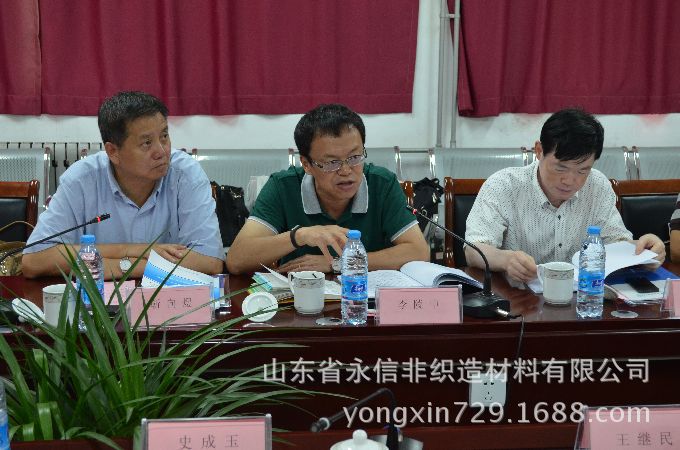 2016年7月6日中國(guó)產(chǎn)業(yè)用紡織品行業(yè)協(xié)會(huì)組織有關(guān)專家對(duì)山東永信申請(qǐng)的“中國(guó)醫(yī)衛(wèi)用水刺非織造材料研發(fā)基地(山東)”進(jìn)行評(píng)審。中產(chǎn)協(xié)李陵申會(huì)長(zhǎng)、李桂梅副會(huì)長(zhǎng)、鄭俊林副會(huì)長(zhǎng)、段守江副秘書長(zhǎng),山東省紡織工業(yè)協(xié)會(huì)夏志林會(huì)長(zhǎng),章丘市委常委、政法委王繼民書記,明水經(jīng)濟(jì)開發(fā)區(qū)經(jīng)發(fā)局潘立浩局長(zhǎng),山東省紡織科學(xué)院紀(jì)芳院長(zhǎng),東華大學(xué)紡織學(xué)院靳向煜副院長(zhǎng),上下游企業(yè)及公司有關(guān)領(lǐng)導(dǎo)參加了該研發(fā)基地現(xiàn)場(chǎng)審定會(huì)。