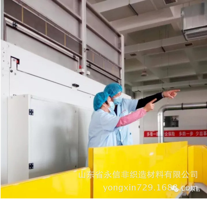 在公司水刺生產線現場,永信總經理夏倫全向李會長一行介紹了該條生產線的性能特點。