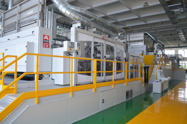 通過氣壓棉箱形成均勻棉層喂給梳理機進行纖維分梳;雙梳理的工藝配置,不僅實現了四層棉網復合工藝,而且有效保證了纖維梳理負荷,降低了纖維損傷,提高了纖維分梳質量和單纖化,保證了產品橫向均勻和克重穩定,顯著提高了后加工品質和效率。