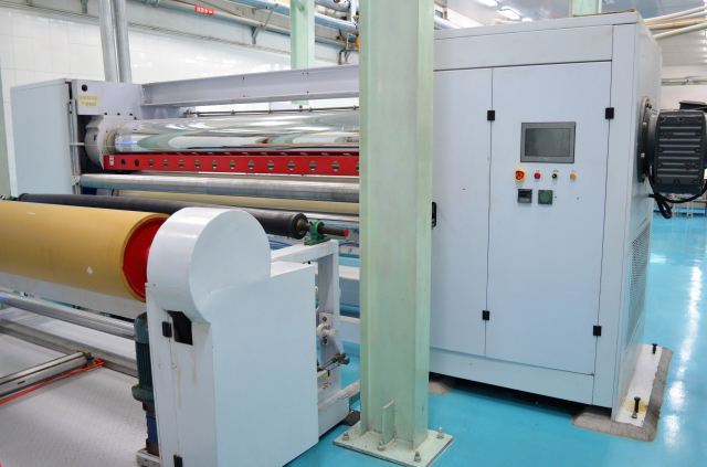 該軋光機由金屬鏡面輥與聚酰胺塑料輥組成,采用無級調整中高技術、導熱油加熱方式,具有加工布面厚薄均勻一致、平整光滑、光澤度高等特點。